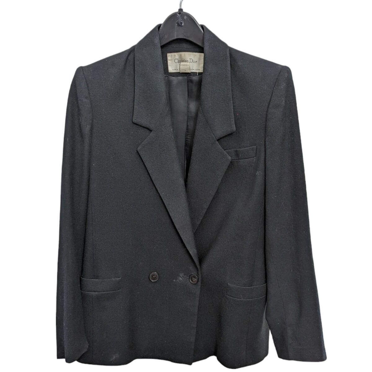 Christian Dior Black 100% Pure Wool Lined Double Breasted Blazer Jacket Size 8