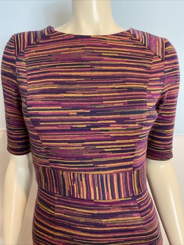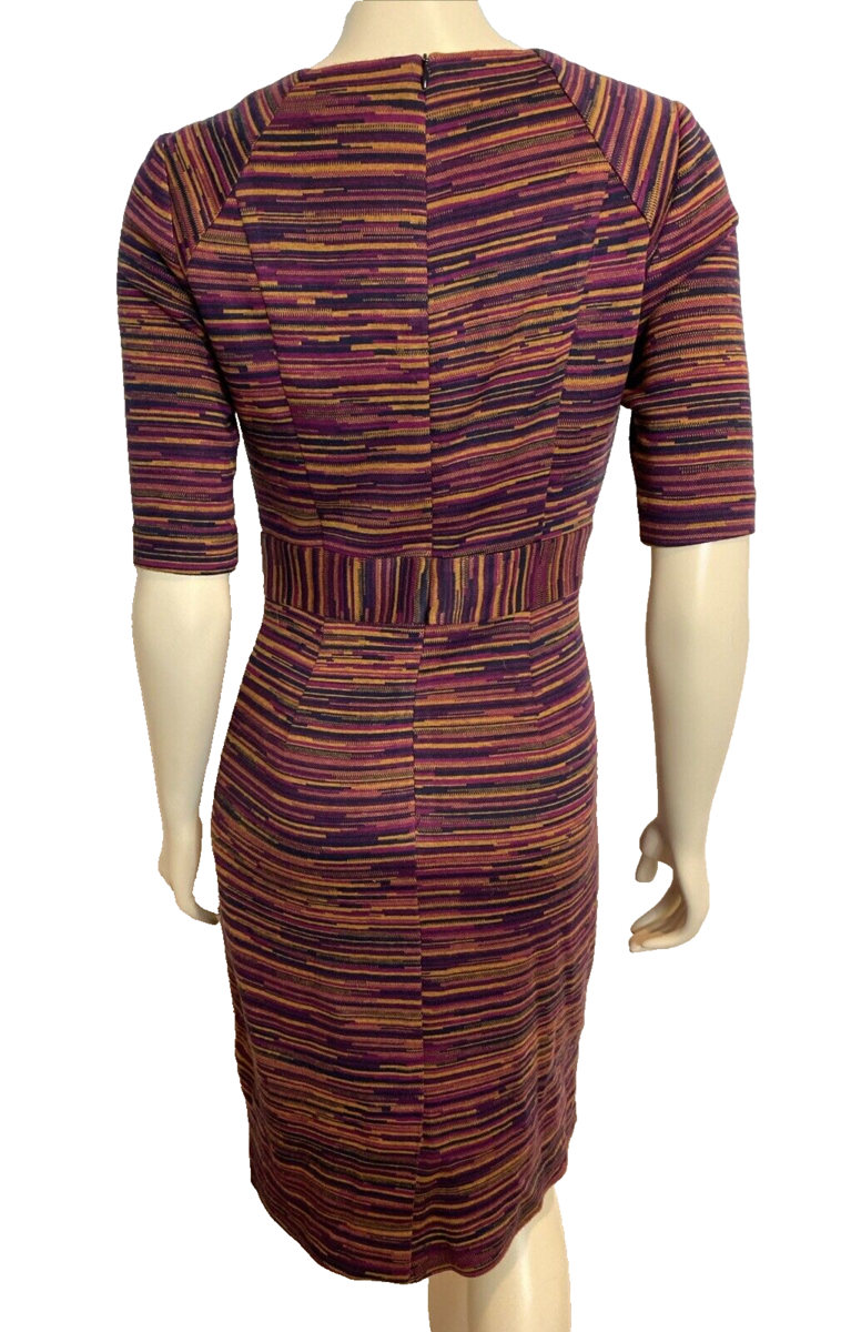 Trina Turk Purple, Blue, Gold Striped Short Sleeve Lined Pencil Dress Size 2