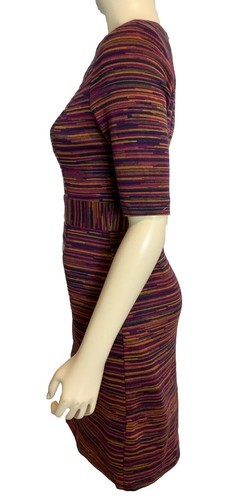 Trina Turk Purple, Blue, Gold Striped Short Sleeve Pencil Dress Lined