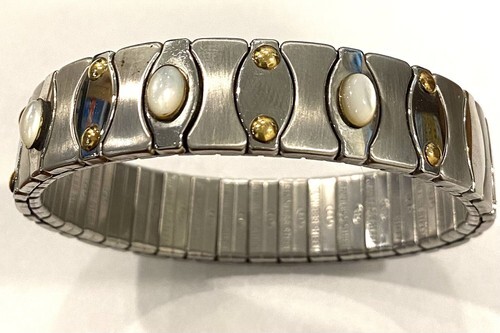 Vintage CP Stainless Steel Expanding Bracelet, Moonstone & 18K Gold Accents