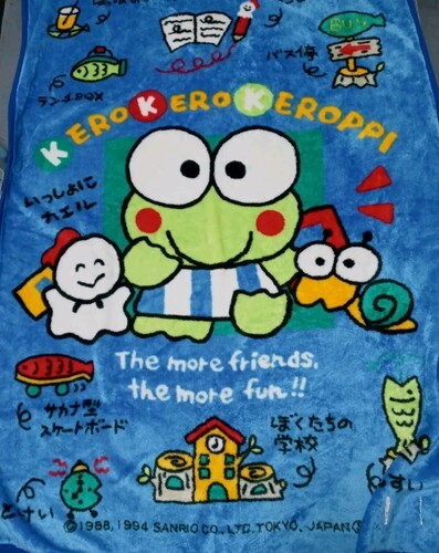 The blanket features a charming Keroppi character design, perfect for fans of the Hello Kitty character family.