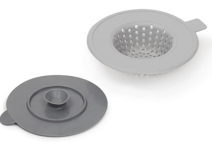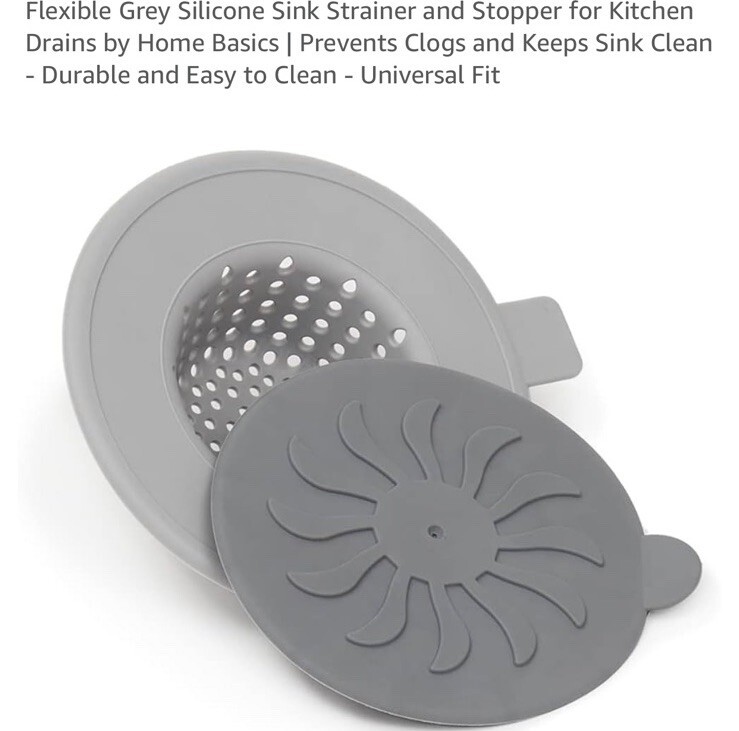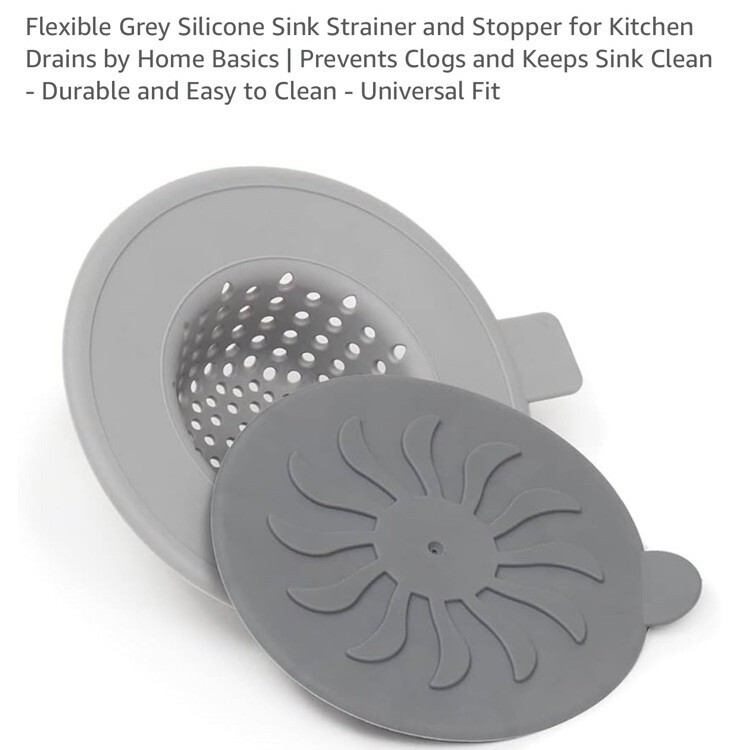 Flexible Grey Silicone Sink Strainer and Stopper for Kitchen Drains by Gray