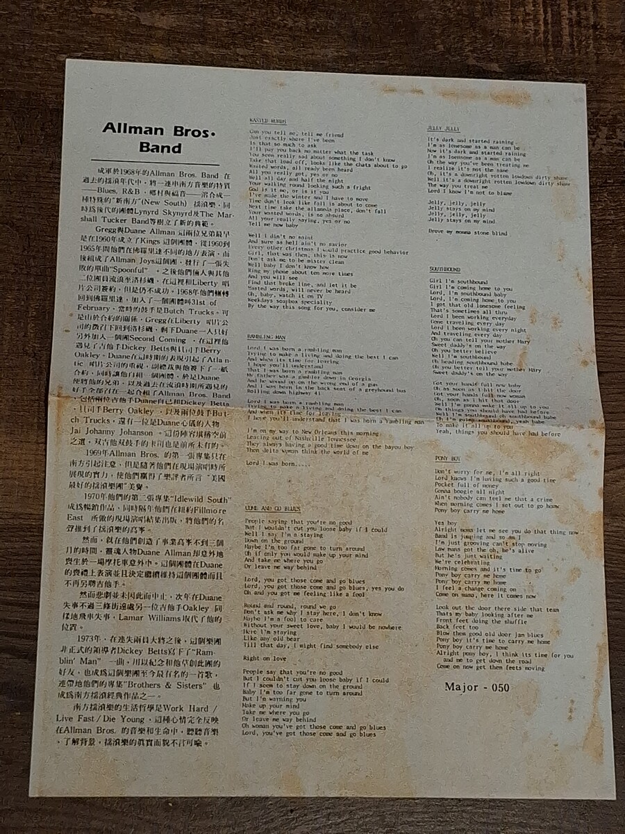 The Allman Brothers Band ? Brothers and Sisters (Taiwan Rocky Collection LP, Major 050) EX/VG++