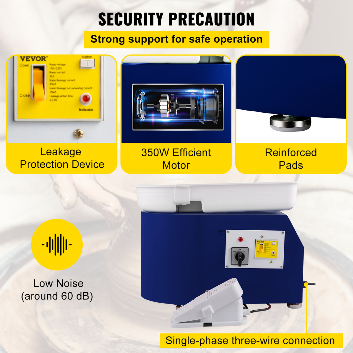 VEVOR Pottery Wheel 28cm 350W Pedal Detachable Basin 18Pcs Tool Kit Blue