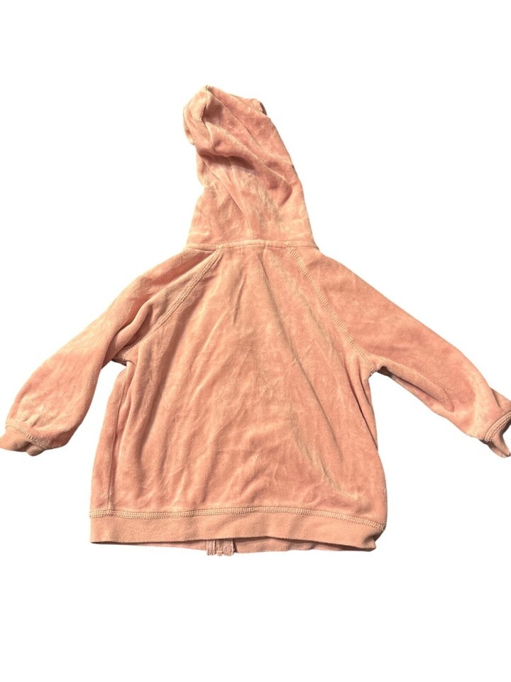 Angel Dear Toddler Hooded Zip-Up Jacket Pink Velour Fabric Lightweight With Fron