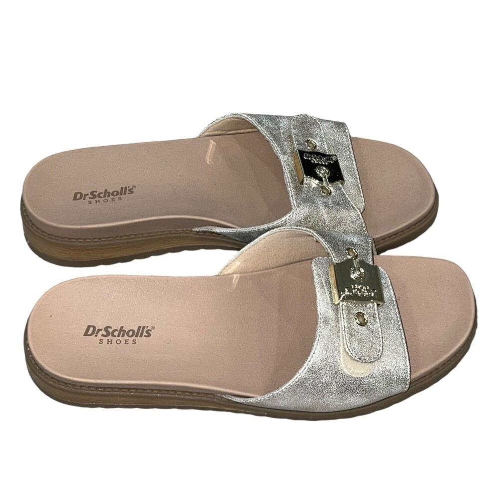 Dr. Scholls Womens Slide Sandals Size 10W Metallic Silver NWOB