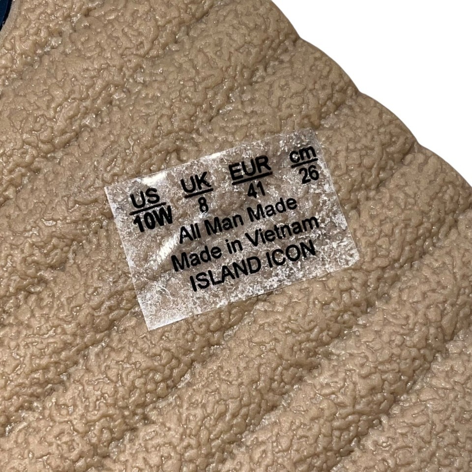 Elegant slide sandals with metallic accents. Comfortable fit for wide-sized feet. Ideal for casual wear with a stylish metallic touch.