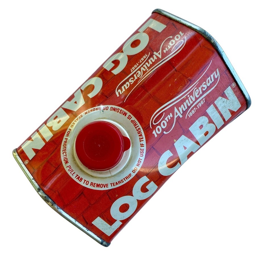 Vintage Log Cabin Syrup Tin 100th Anniversary Rust Dents Authentic