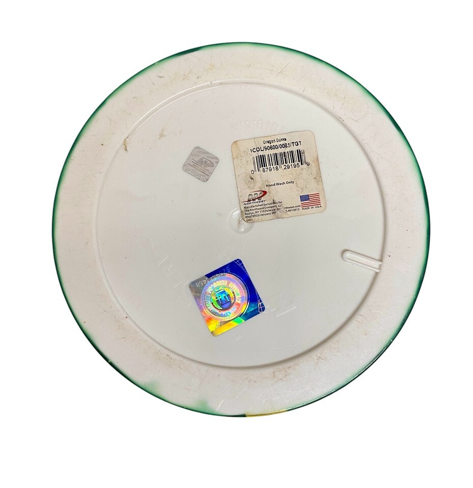 This University of Oregon Ducks waste basket is a one size, green and yellow trash can featuring the team's logo. Made by The Northwest Company in the United States, it is suitable for use in dorm room, office, bathroom or bedrooms. Designed for unisex adult fans of the Oregon Ducks college team, this plastic waste basket is a great addition to any fan's collection.