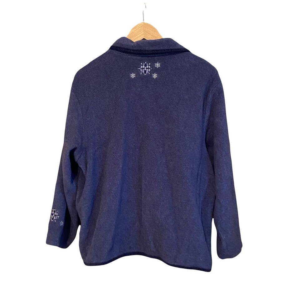 Womens Blue Fleece Jacket Holiday Lodge by North Crest Snowman Size Large 14 16