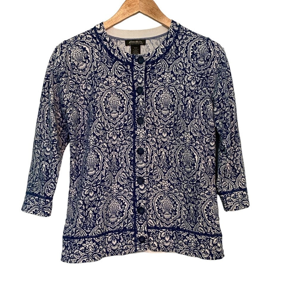 Eddie Bauer Cardigan Blue White Print Womens and similar items