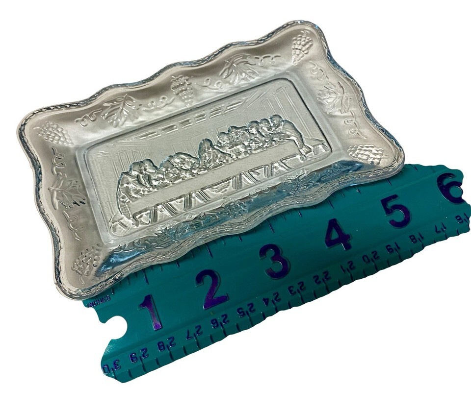 Vintage Tiara Indiana The Last Supper Religious Clear Glass Small Trinket Dish