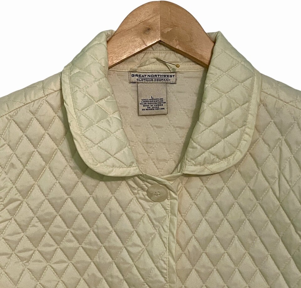 Great Northwest Quilted Jacket Vintage Womens Large Cream Buttons Pockets Light