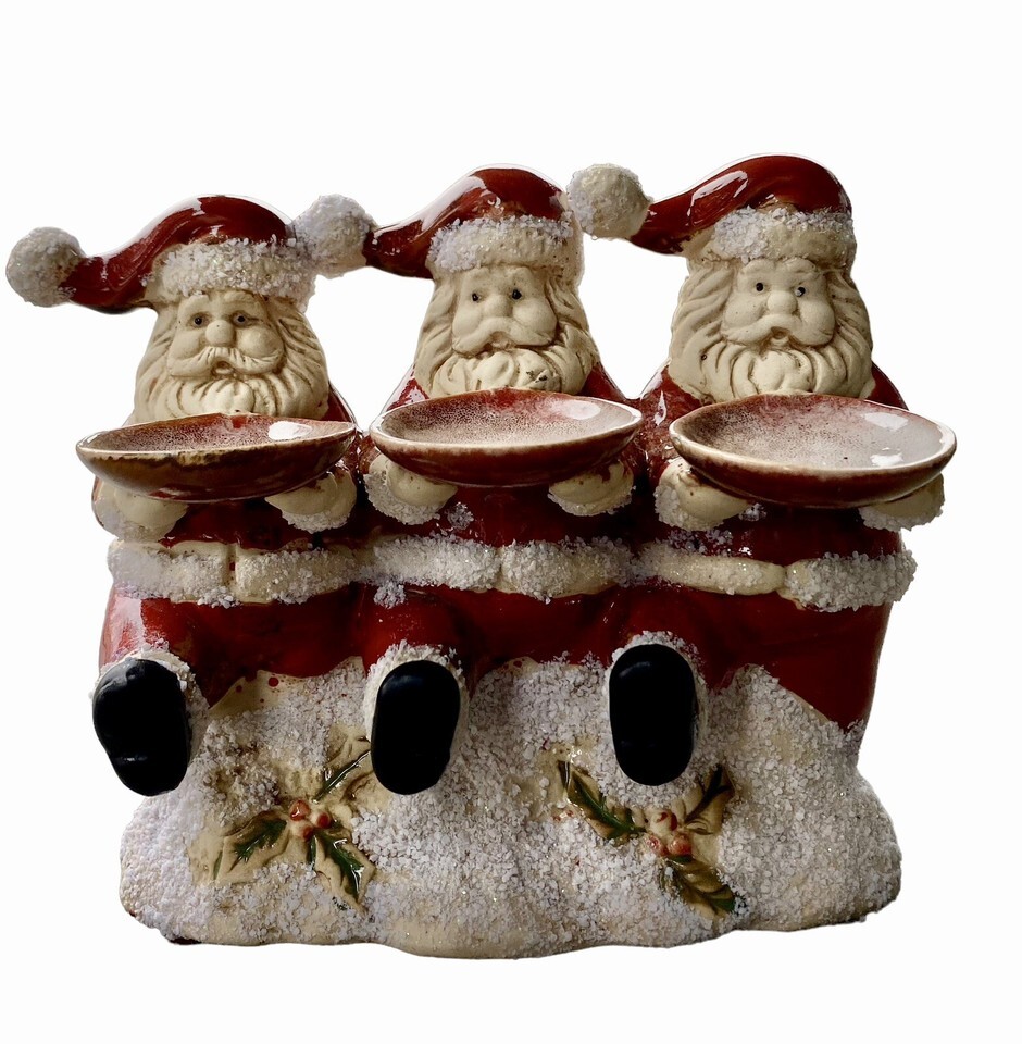 Ceramic Santa Trio Holding Dish Figurine Can and 50 similar items