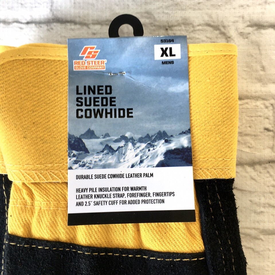 Suede Gloves Mens Size XL Cowhide Leather Palm Red Steer Lined NWT 53164