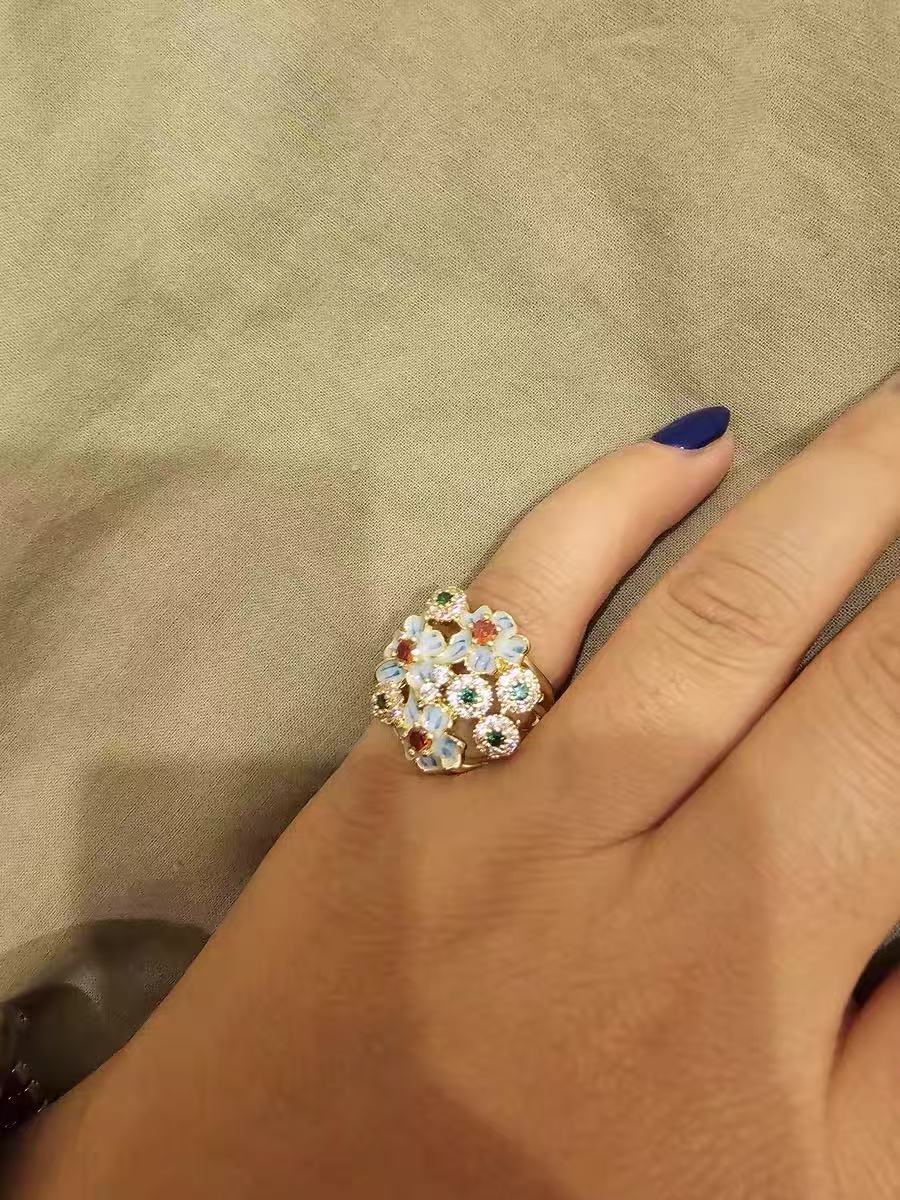 Vintage antique Dripping oil flower ring(USA#7)