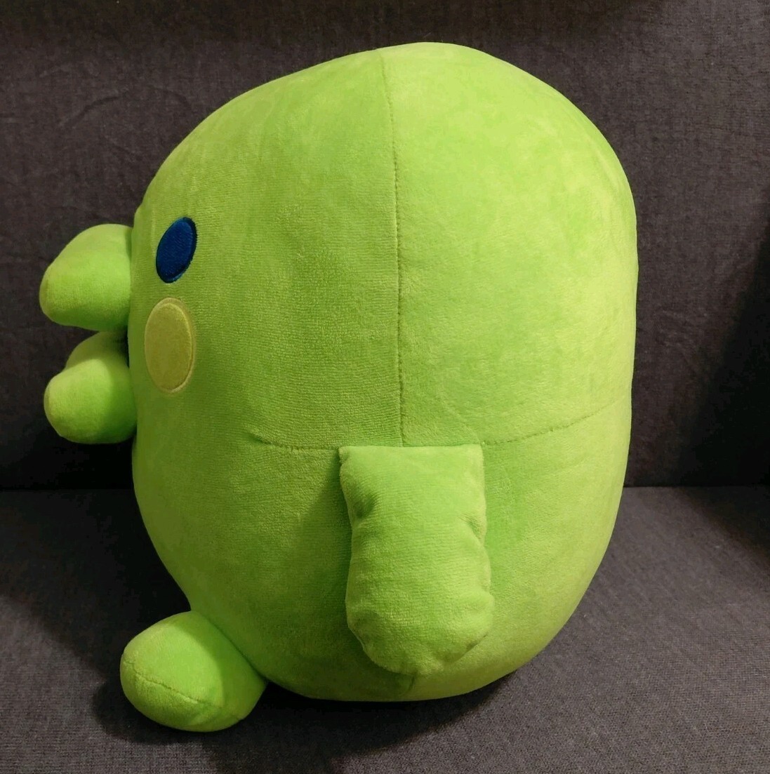 This medium-sized plush toy from Japan is green in color and showcases the cute and cuddly Kuchipatchi animal design.