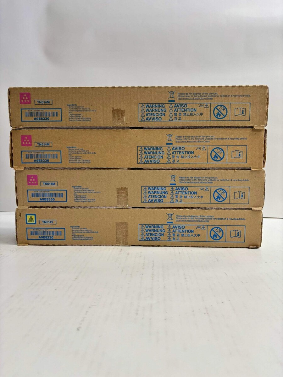 4 New Genuine Konica C458,C558,C658 MMMY Toners TN514 (No Cyan & Black)