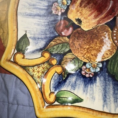 Scalloped Square 15x15" Wall Plate Piccadilly Italy Handmade Hand Painted Amalfi