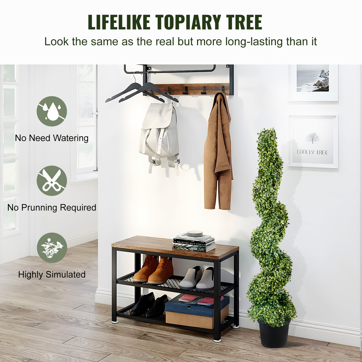 Complete Set: Overall Height: 4 ft / 121.9 cm. Spiral artificial topiaries come with a pot base, making them hassle-free and ready to use. Simply place the topiary in the desired location, and it instantly adds a touch of elegance to your space.