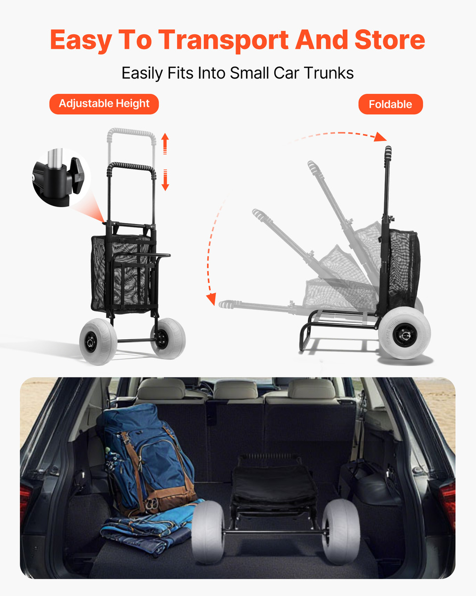VEVOR Beach Dolly 20.1"x14.6" Deck 9" Balloon Wheels 165LBS Adjustable Height