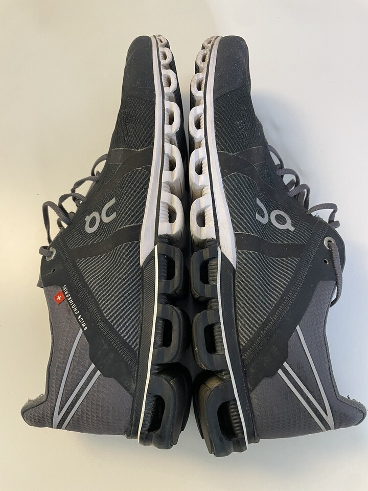 ON running shoes size Men’s 10.5 Black Silver Swiss Engineering