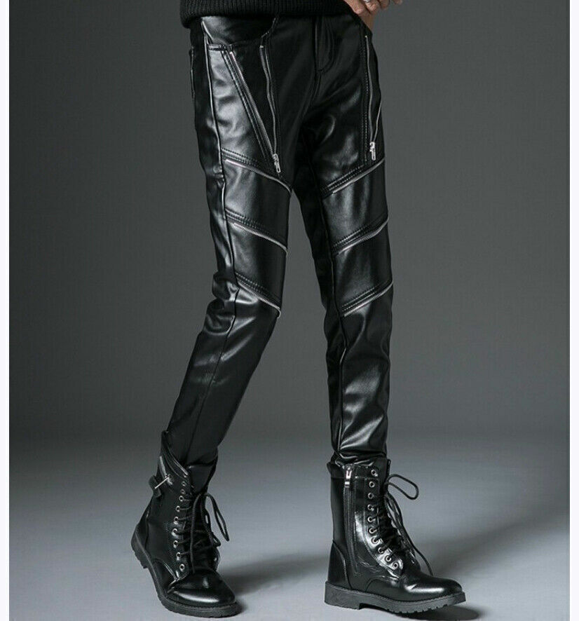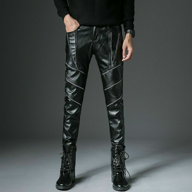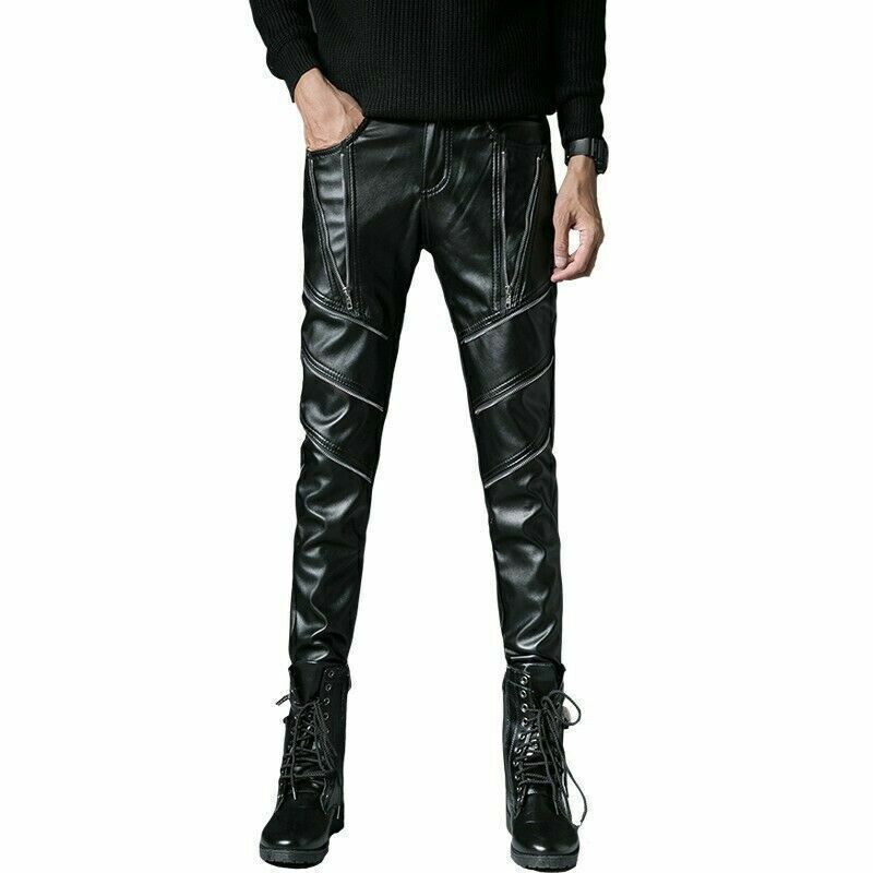 MENS LEATHER LEDER JEANS THIGH FIT PIPING PANTS TROUSERS PARTY RETRO PUNK GOTHIC