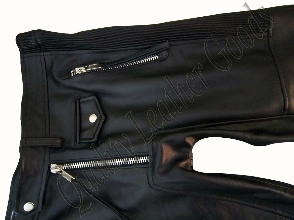 ?THIS PURE GENUINE SOFT LEATHER STYLISH PANTS WITH A SLANT ZIP FLY IS MANUFACTURED WITH TWO FRONT POCKETS WITH ZIPPER ( AS SHOWN IN PICTURE ) ,