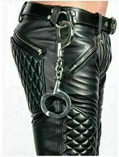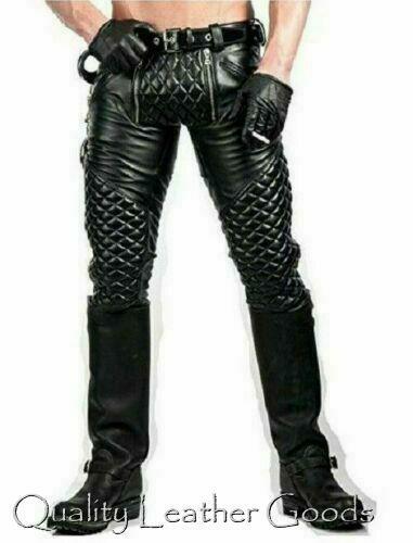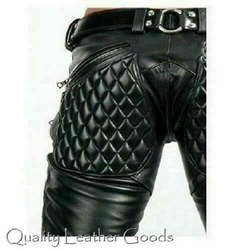 MENS LEATHER JEANS PADDED PUNK BIKER BREECHES PANTS TROUSERS 64 FN BLUF CLUB