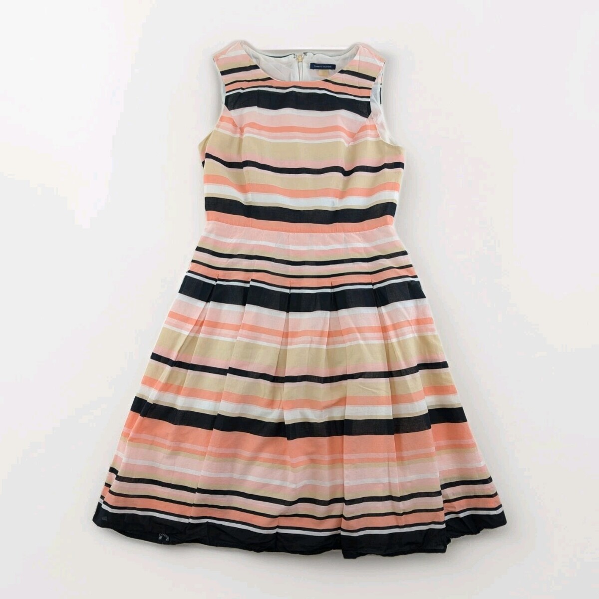 Tommy Hilfiger Womens Sz 6 Striped Sleeveless Fit & Flare Dress Cotton Lined
