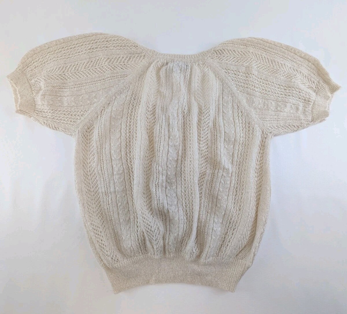 Express Design Studio Womens XS Cream Knit Short Sleeve Sweater Wool Blend Scoop