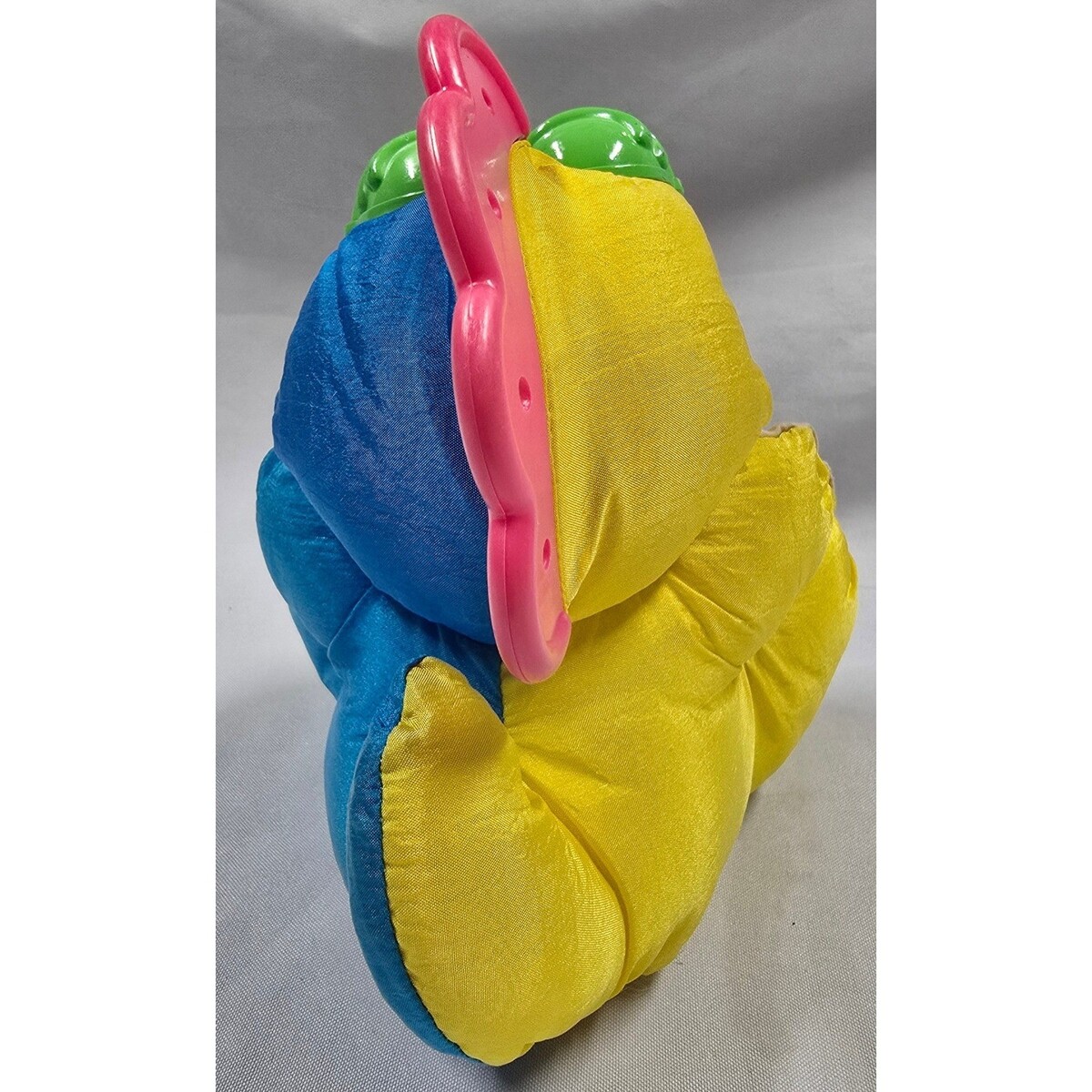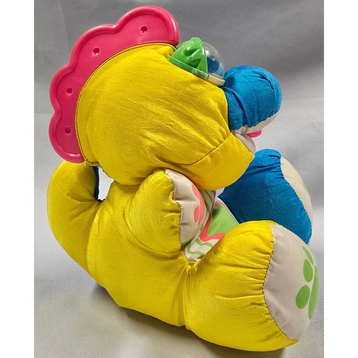 Vintage 1991 Fisher Price Puffalump Plush Dinosaur Baby Blue Yellow Rattle Eyes