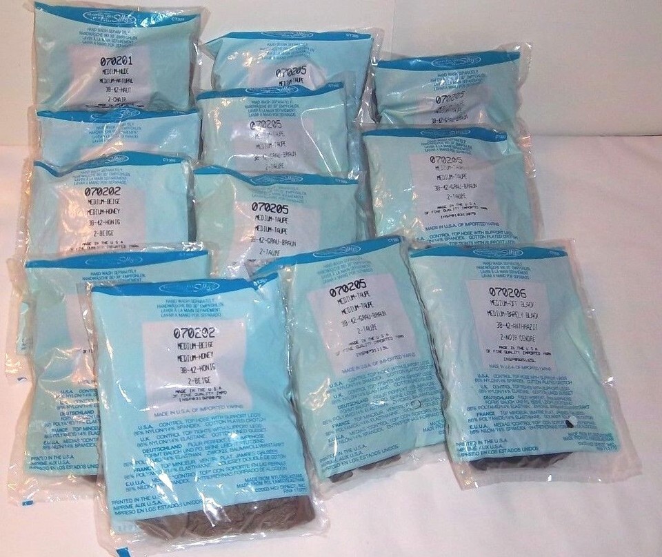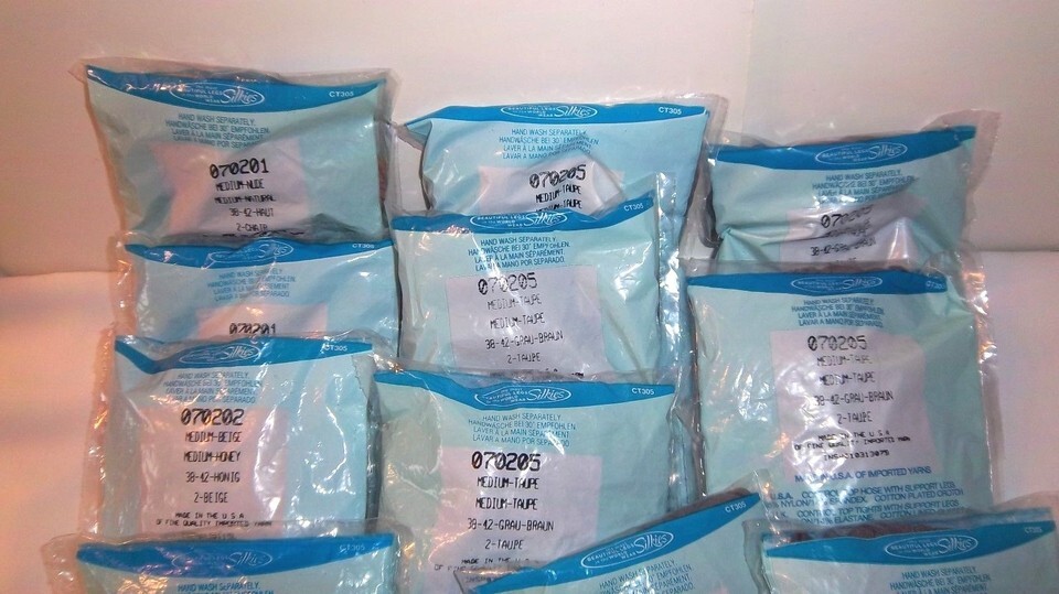 12 Pr Lot Sz Medium Control Top Sandalfoot SILKIES Pantyhose Taupe Beige More