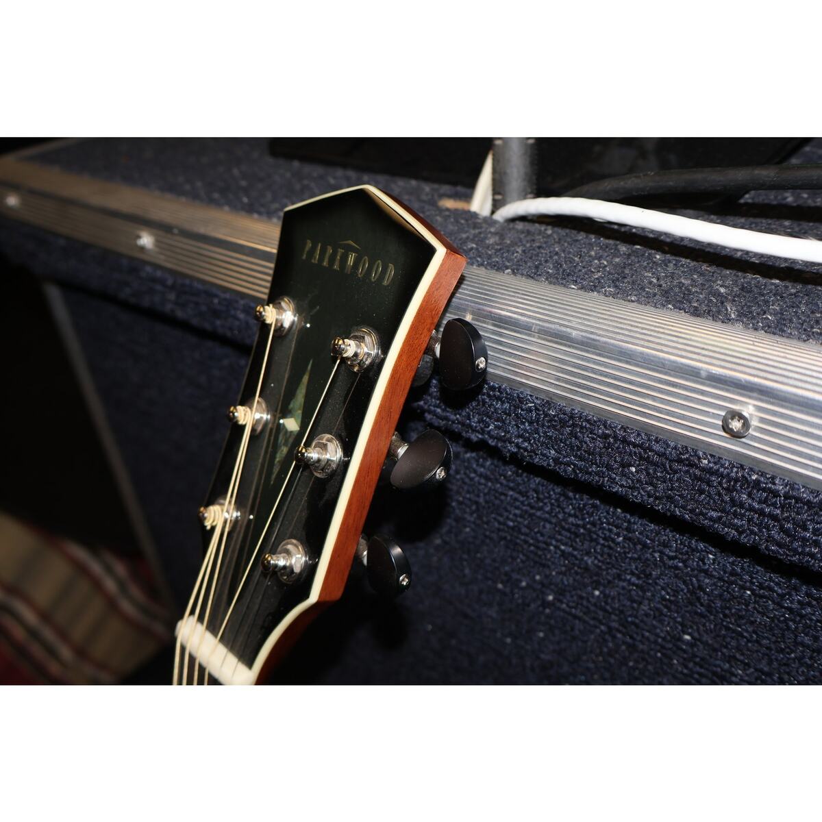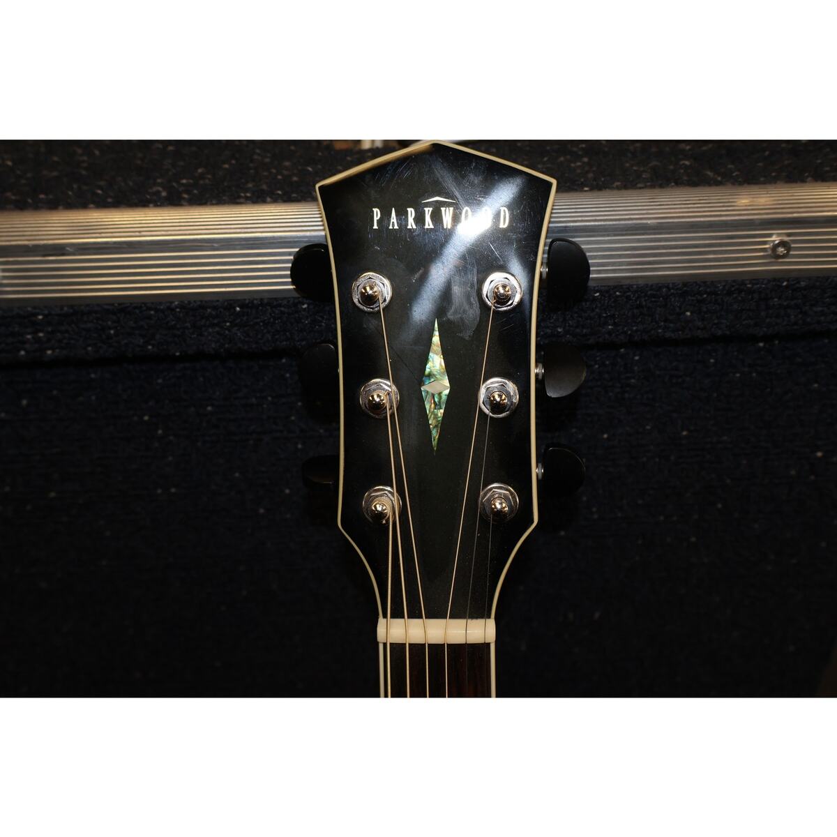 You are looking at a Parkwood PW560 6-String Acoustic Electric Guitar. It is used but in good condition. It does show signs of use with scuffs, scratches, and grime around the guitar, but nothing too major or too distracting?just average wear and tear from normal everyday use.