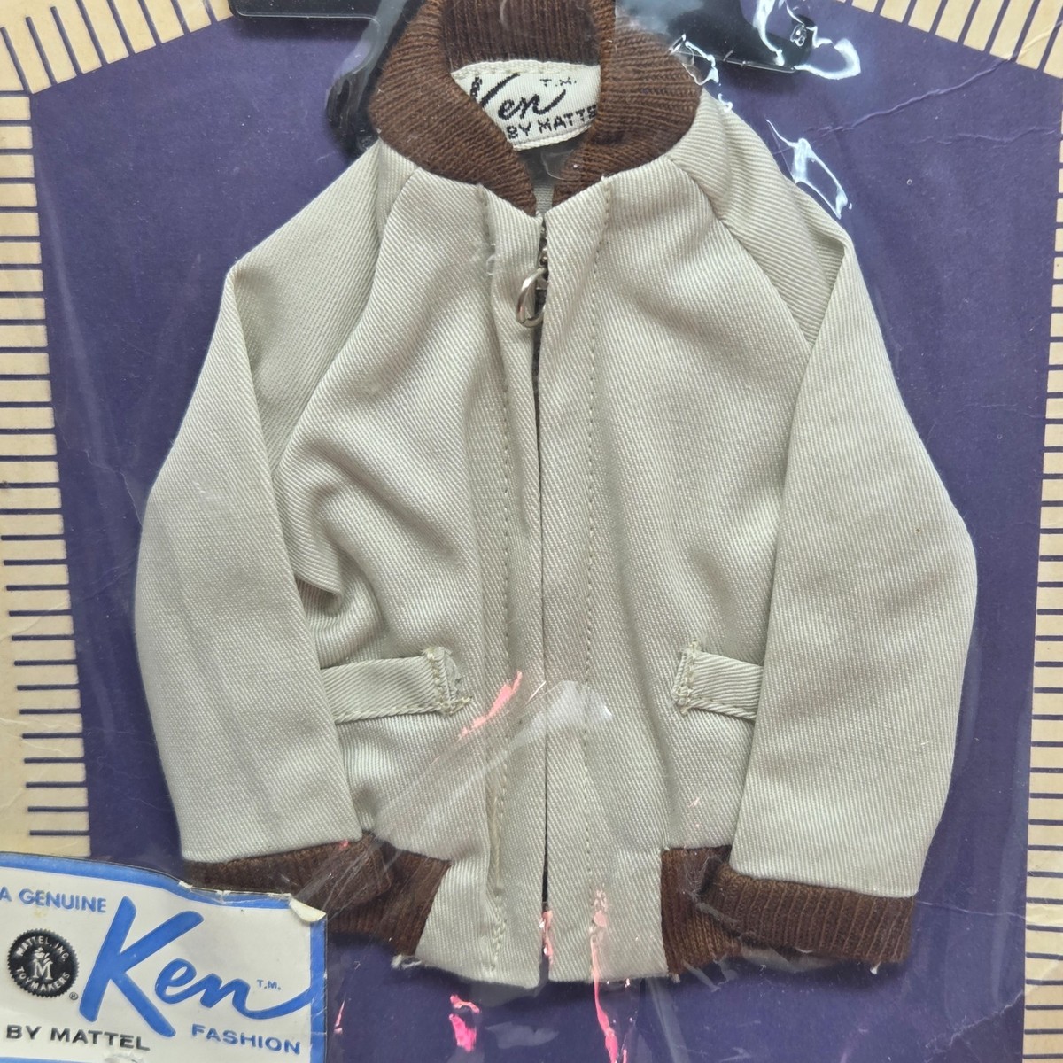 VINTAGE 1960's KEN FASHION PAK TAN / BROWN WINDBREAKER COAT / JACKET MATTEL