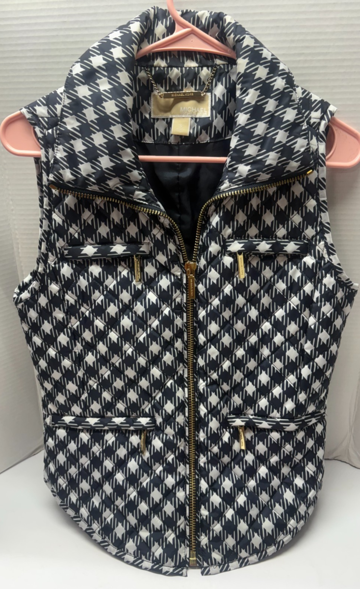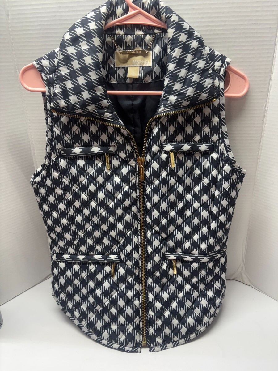 Michael Kors Women's S Black & White Puffy Sleeveless Zipper Up Jacket Vest