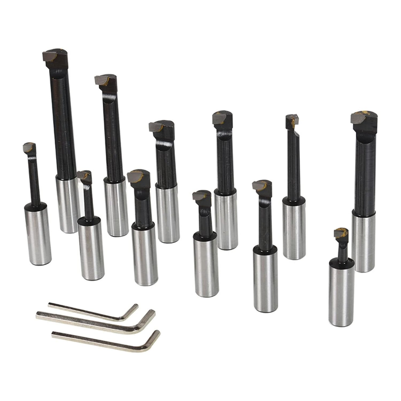 12-Pack 3In Boring Head R8 Shank 3/4In Carbide Boring Bar Set Milling