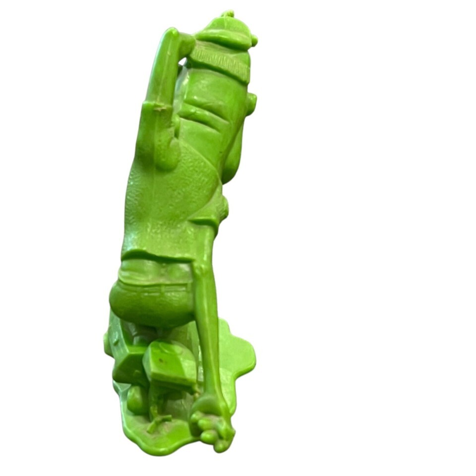 This vintage figurine captures a whimsical surfing character from the Nutty Mads series. Its vibrant green color and unique design make it a collector's item.