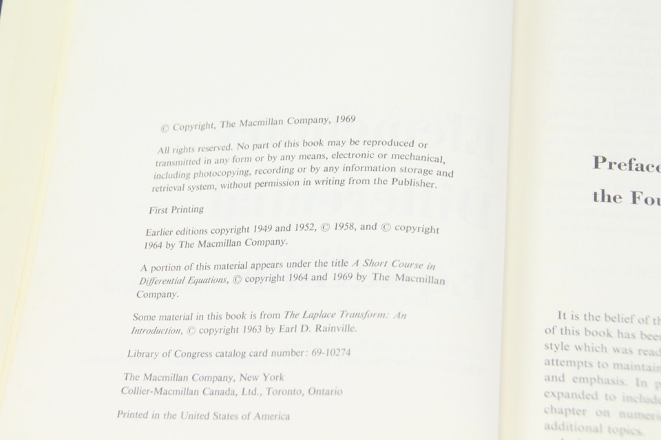 Elementary Differential Equations Earl Rainville Phillip Bedient HC 4th Ed 1969