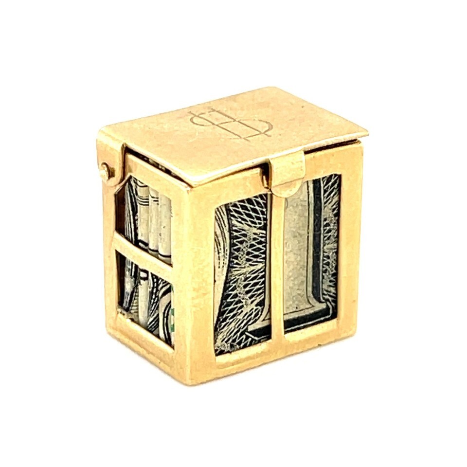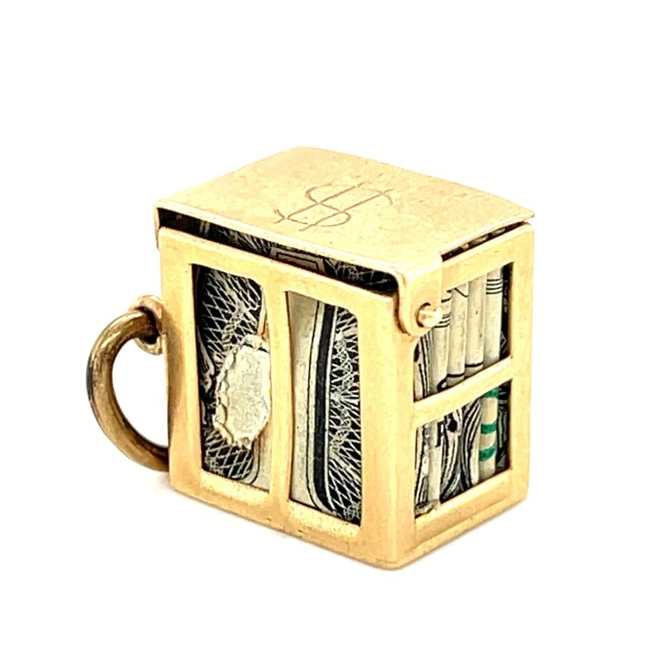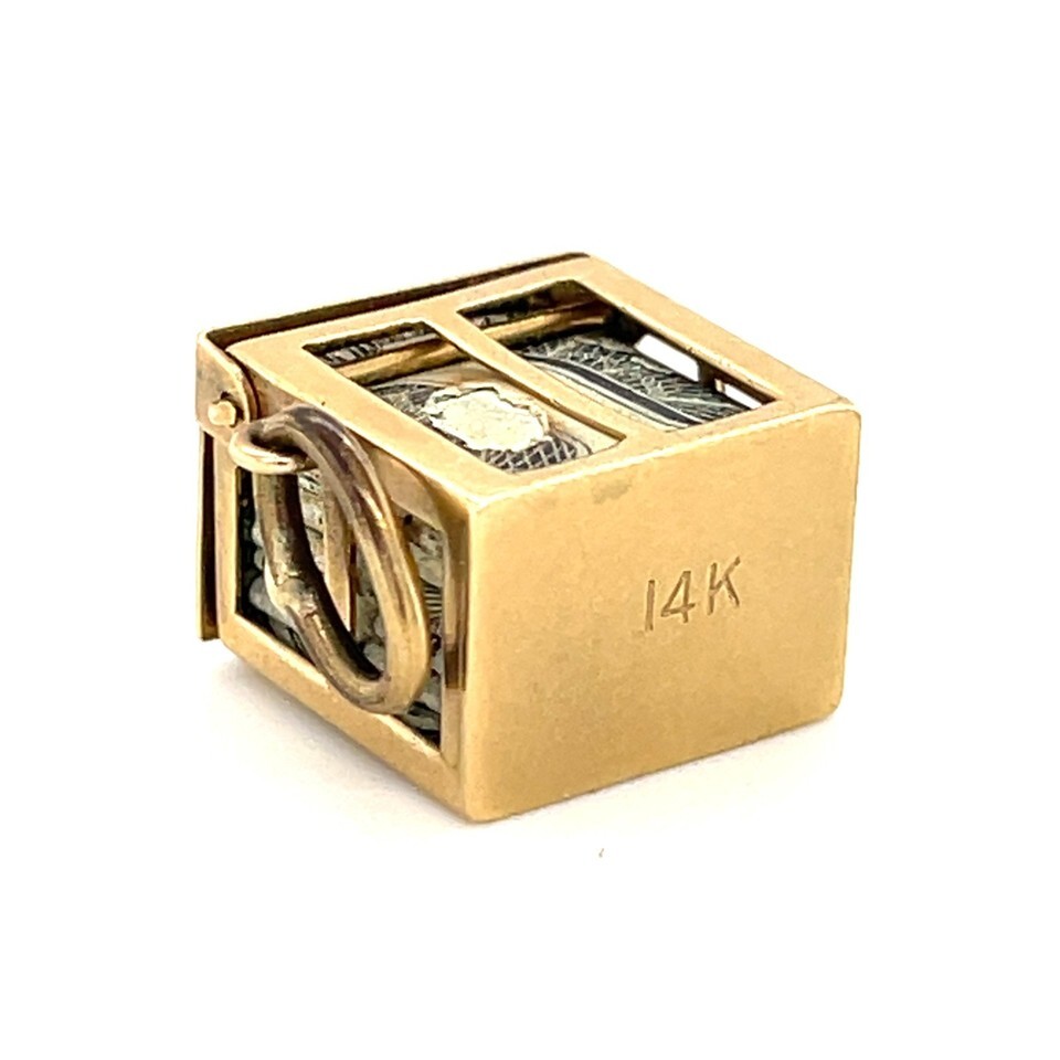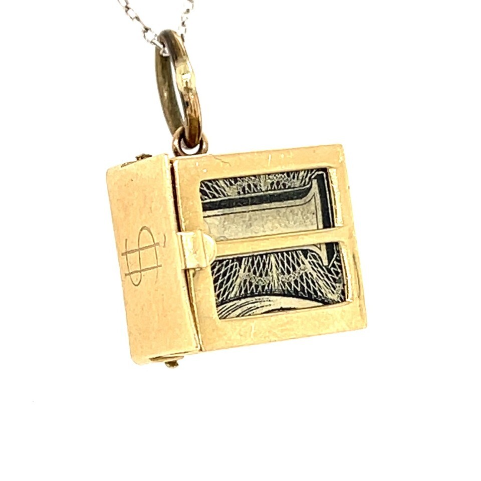 Authenticity Guarantee 14K Yellow Gold "Emergency Dollar" Case Charm Vintage...