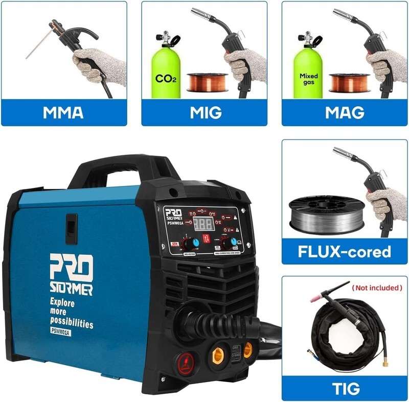 ??Convenient Design?If you are a beginner, you can select our preset usage mode on the control panel of the machine; if you are a proficient, you can fine-tune the parameters of the machine by turning the knob.And this Prostormer Welding Machine is suitable for Lift TIG, flux MIG, gas MIG and so on.