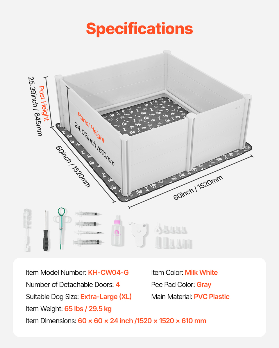 VEVOR Dogs Whelping Box, 60 x 60 x 24 inch, Plastic PVC Playpen, Milk White