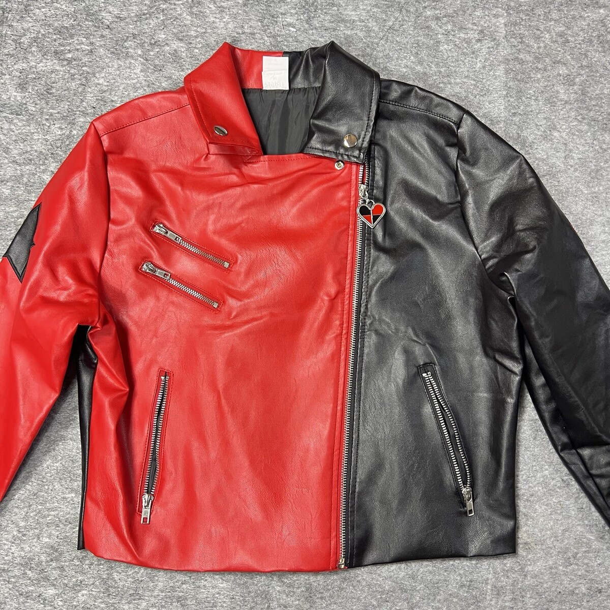 Harley Quinn Red Black Faux Leather Jacket DC Comics Medium M Cosplay