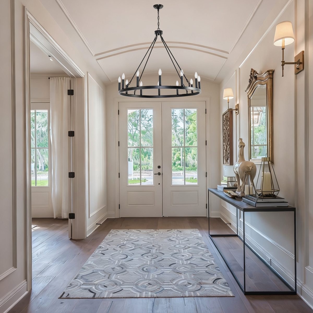 12-Light Wagon Wheel Chandelier 31In Farmhouse Pendant Light for Hallway Foyer