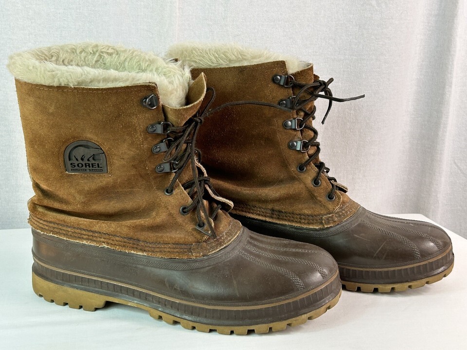 SOREL Vtg Made Canada Power Kaufman Caribou Rubber Snow Winter Boots Men's Size 11