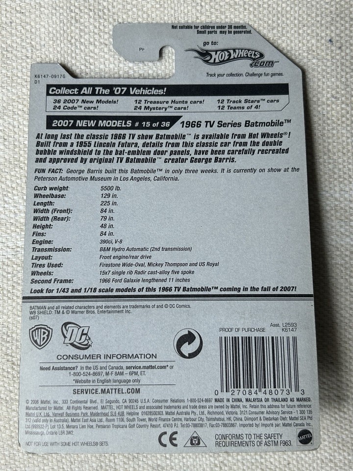 NEW Hot Wheels TV Batmobile, 2007 First and similar items