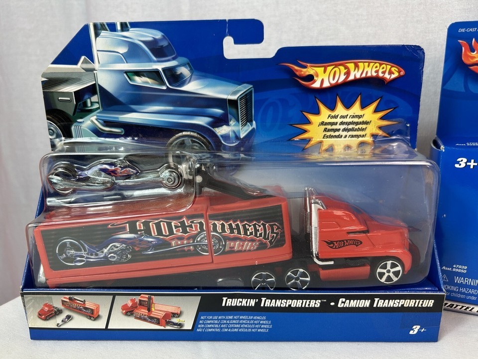 3 Hot Wheels Pavement Pounder & Truckin' Transporters - Semi & Motorcycles - NEW