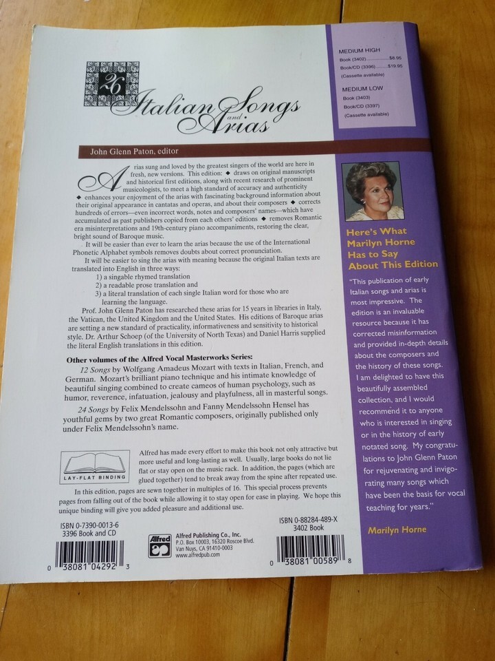 26 ITALIAN SONGS AND ARIAS Medium High Voice - Sheet Music Book NO CD