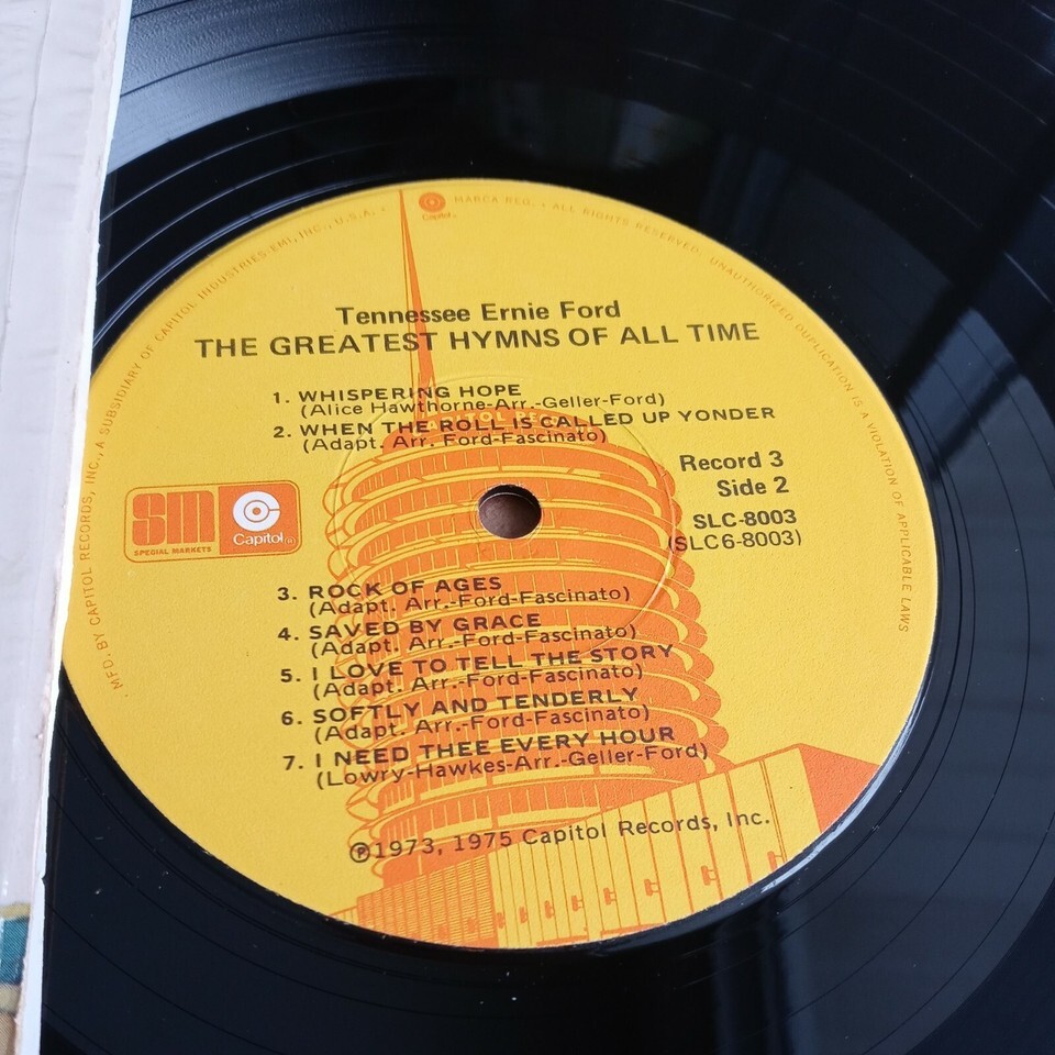 "TENNESSEE ERNIE FORD sings the Greatest Hymns of all Time"- 3 LP Vinyl Set.Very Good Condition Album;