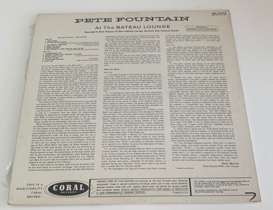 PETE FOUNTAIN AND HIS JAZZ GROUP - BATEAU LOUNGE - ALBUM